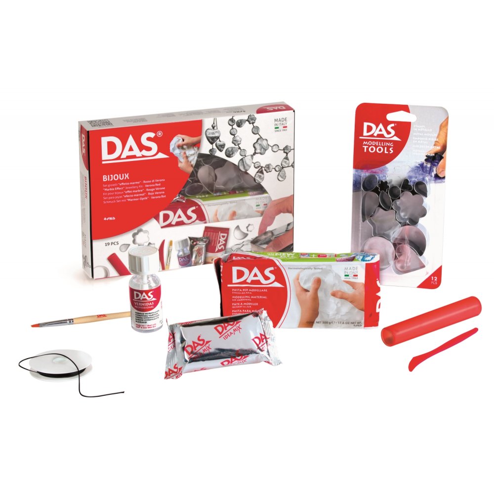 Das Idea Mix Bijoux Pack är ett kit för dig som vill börja med att skapa fantastiska smycken med marmoreringseffekter. Paketet innehåller allt du behöver för att komma igång och finns i två olika färger på marmoreringseffekten. Leran är vit.
