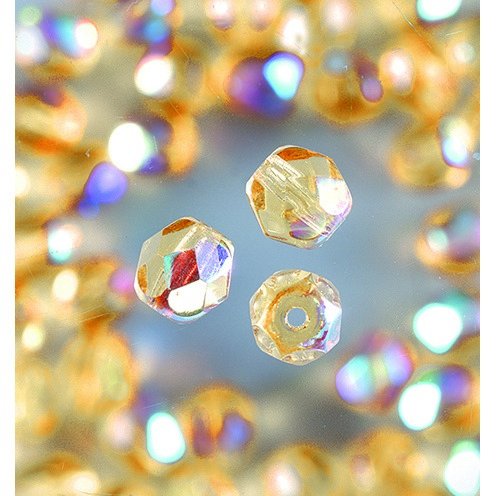 Glaspärlor facetterade - ljus topas - runda, skimrande