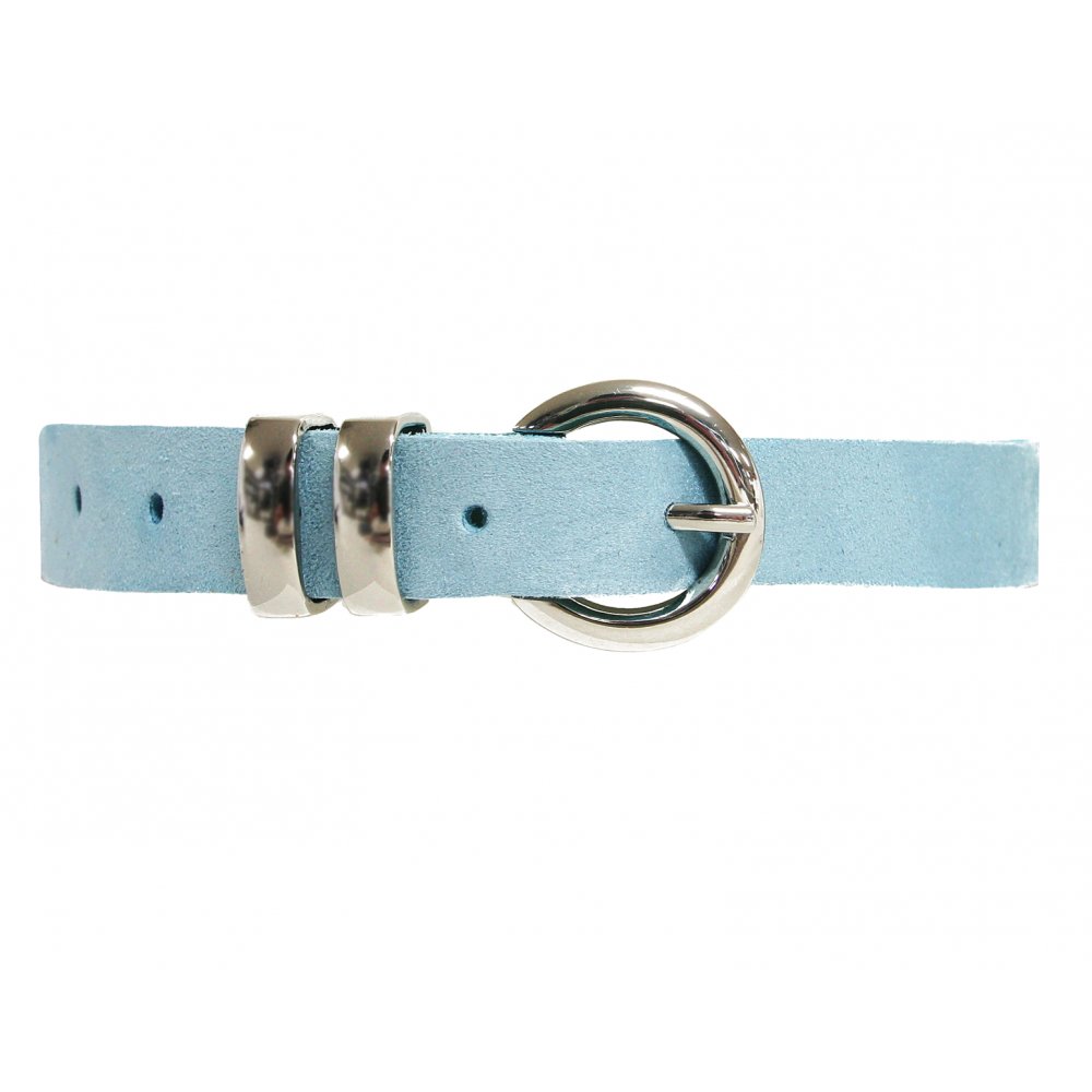 20 mm damskärp i borstad kalvläder - Turkos - 85 cm