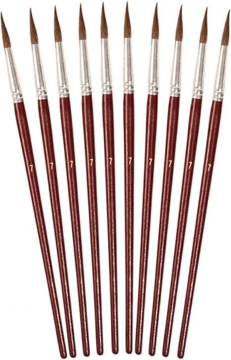 Rund pensel av mjukt ponnyhår för extra hållbarhet. Passar bra till våra vattenfärger. Förpackning med 10 st.