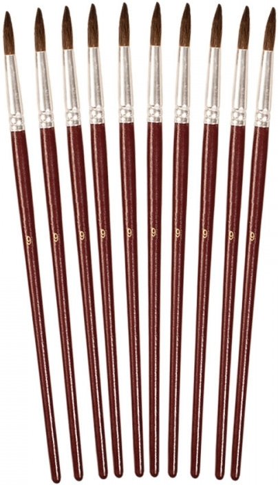 Rund pensel av mjukt ponnyhår för extra hållbarhet. Passar bra till våra vattenfärger. Förpackning med 10 st.