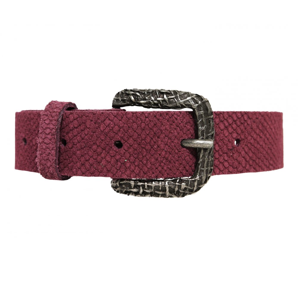Dambälte i crocco-mönstrad oxläder - Vinrött - 105 cm