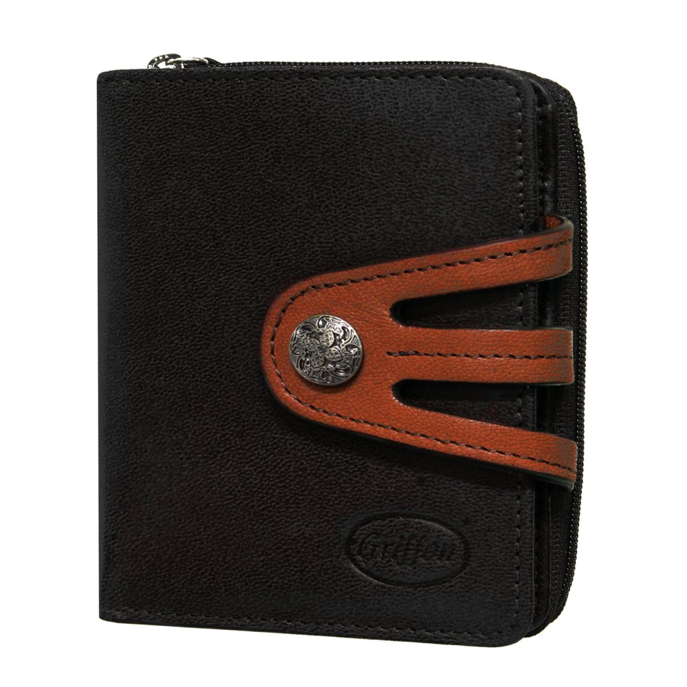 På den bakre ovansidan av plånboken finns även ett större fack med dragkedja med två myntfack.