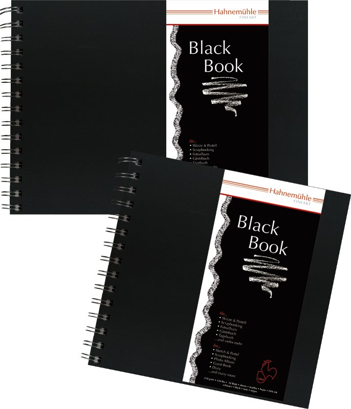 En sprialbunden ritbok med svart papper för en kontrastfull pastellteckning, eller för montage, fotoalbum och scrapbooking.