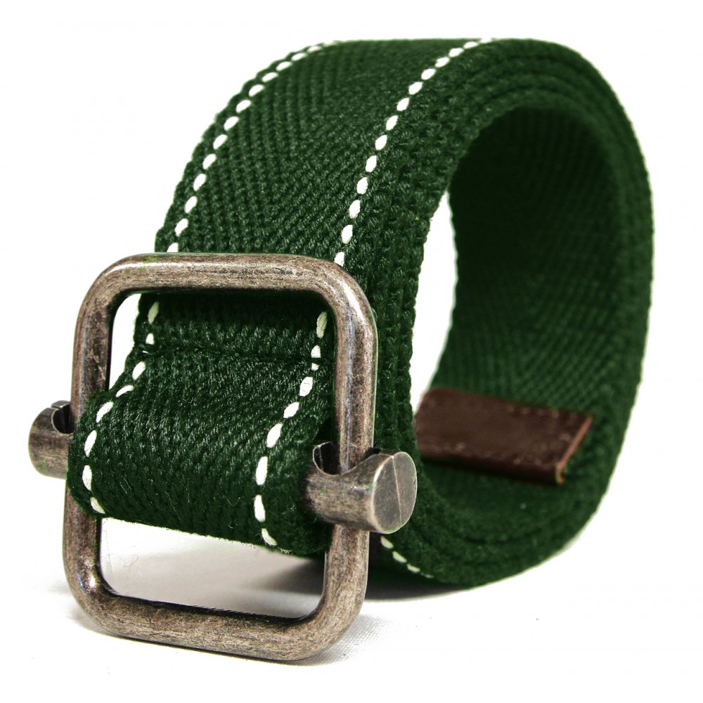 40mm bälte i textil. Modern design med mattborstat metallspänne och läderdetaljer.