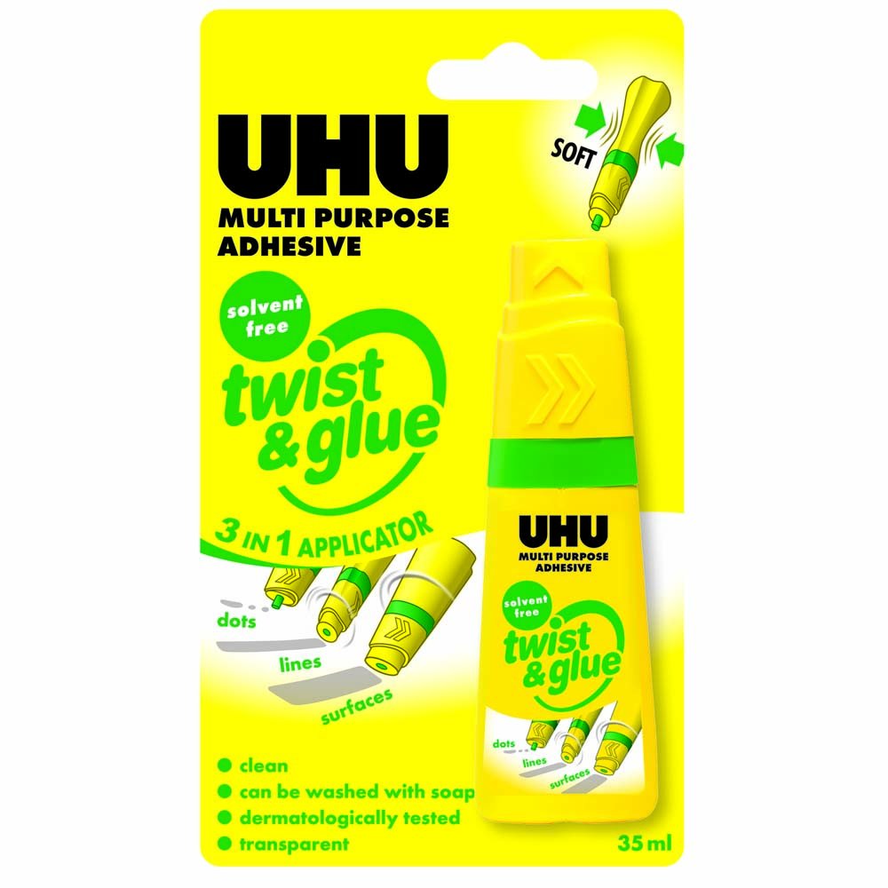 Ett universallim som är fritt från lösningsmedel. Twist & Glue har även fått smeknamnet Flinka Flaskan.